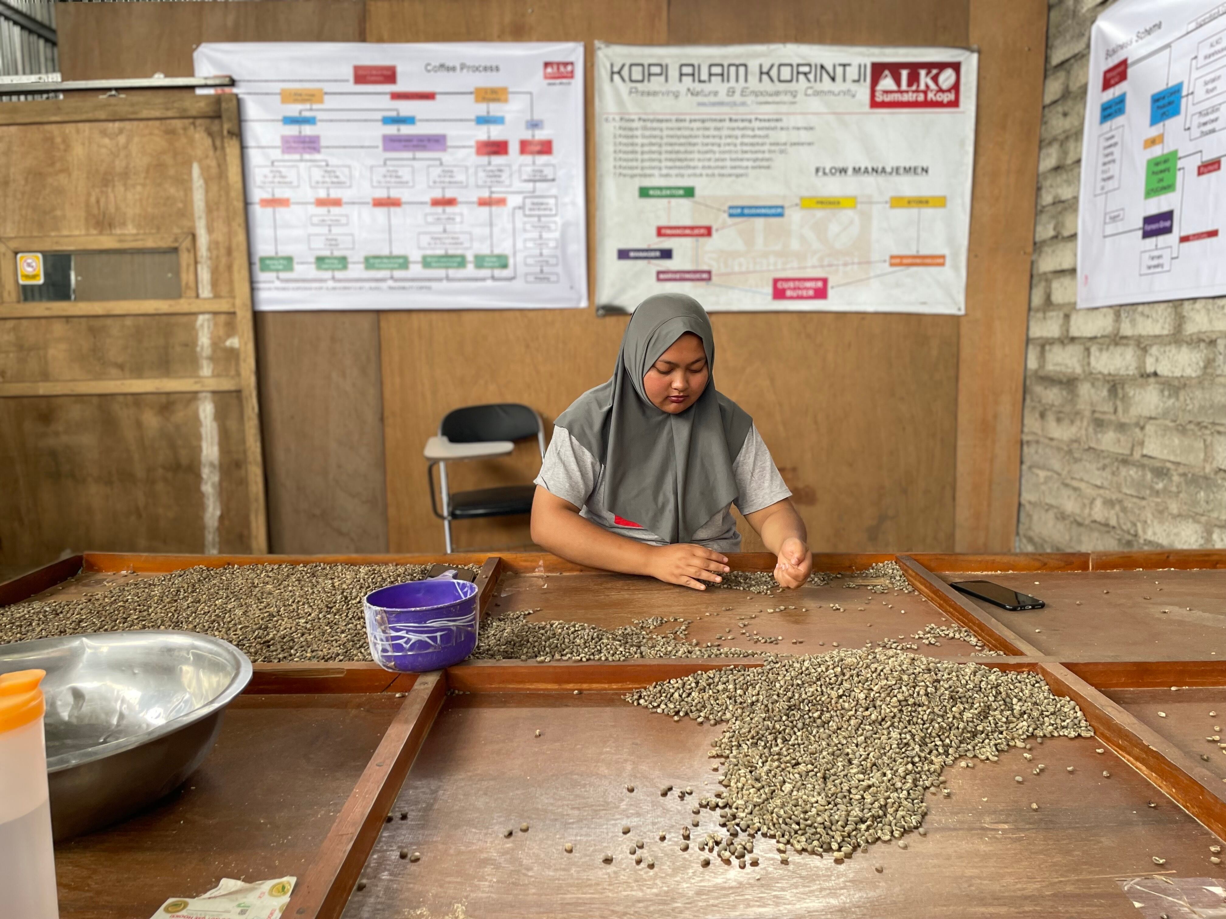 この地域ではじゃがいもやキャベツ、唐辛子などの作物とともにコーヒーが混植され、山から流れる清らかな水と火山性土壌の養分を受けて育ちます。年間を通じて収穫が行われ、1本の木に蕾から完熟チェリーまでが同時に実るため、収穫と選別には高い見極めが求められます。こうした環境と人の手仕事が重なり合うことで、スマトラらしい厚みのある質感に加え、クリーンで奥行きのある味わいが形づくられ、産地としての品質の個性を際立たせています。